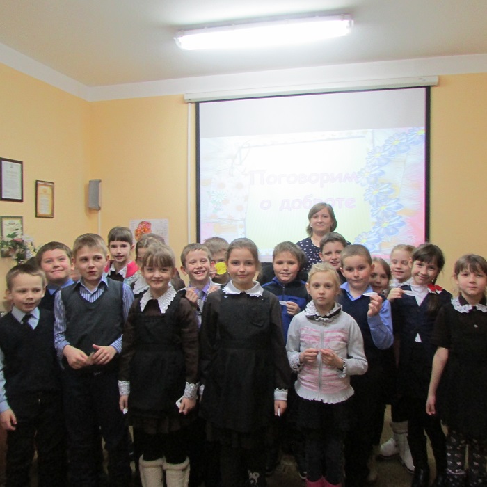 16 февраля в Детской библиотеке для учащихся вторых классов СОШ №1 прошел урок добра «В поисках добрых слов». Вначале сотрудник библиотеки пояснил ребятам, что такое добро. А затем каждый ребенок ответил на вопрос, что же для него означает слово «добро» и с чем оно ассоциируется. И у каждого это понятие оказалось разное.