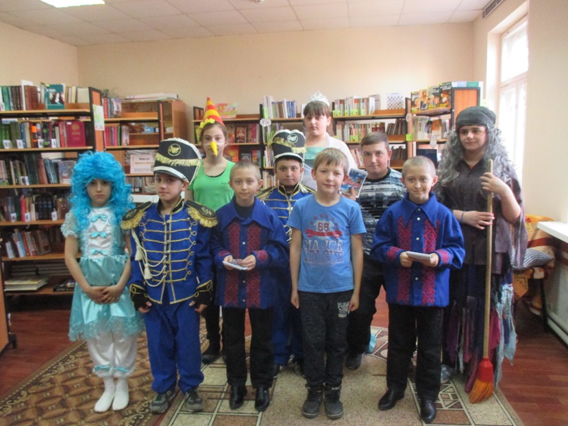 28 марта в модельной библиотеке – филиале №10 х. Вязовской прошла литературная игра «Твоя коллекция литературных героев». Участники игры отправились в путешествие не по морю-океану, не на остров Буян, а в самый, что не на есть обычный город, где жил да поживал мальчик, по имени Вовка (Литвиненко С). И всем-то Вовка хорош, да вот беда, лентяем был. Целыми днями только и делал, что на диване лежал, да мечтал. И услышал он однажды, что проходит в городе какая-то Книжкина Неделя, где Королева Книги награждает лучших читателей. Захотелось и Вовке лучшим читателем Книжного государства стать. Как только он об этом подумал, тотчас со звоном откинулась крышка ларца, и выскочили оттуда два Молодца, одинаковых с лица (Козырев В. и Козырев К.). Все Вовкины желания смогли они выполнить, но сделать его лучшим читателем не смогли. И тогда появилась Королева Книга (Рябченко Л.) в сопровождении отряда гусар (Беналиев Р. и Беналиев И.) и предложила Вовке вместе с ребятами отправиться в «Чудо-книгу», чтобы узнать о том, как стать лучшим читателем библиотеки. Ребята помогли Вовке выполнить многие задания на страницах «Литературная» и «Сказочная». Участники мероприятия вместе с главным героем с удовольствием отгадывали загадки, помогали сказочным героям найти свои потерянные вещи, которые принесла Баба Яга (Мамедова М). Со всеми задания Вовка справился и понял, чтобы стать Лучшим читателем нужно много прочитать книг. Он пообещал, что обязательно им станет.
