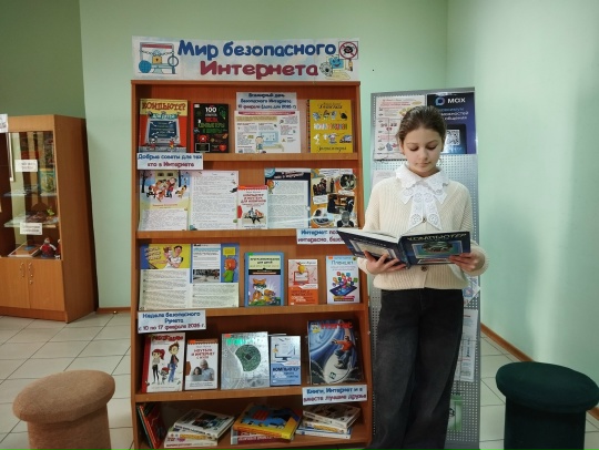 В Детской библиотеке оформлена книжная выставка «Мир безопасного Интернета». Вниманию юных пользователей представлены книжные и периодические издания, посвящённые вопросам безопасного использования компьютера и сети Интернет, а также повышению уровня информационной культуры, обеспечению грамотного поиска информации.