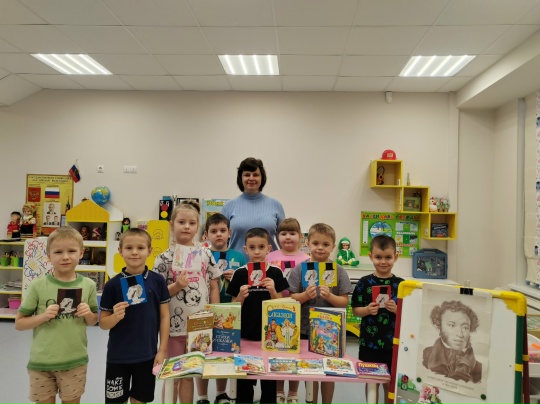Маленькие читатели с большим интересом погрузились в волшебный мир пушкинских произведений. Они познакомились с творчеством писателя, узнали о его жизни и, конечно же, о его удивительных сказках: послушали завораживающий отрывок из поэмы «У Лукоморья», и, кажется, даже увидели того самого учёного кота; загадали самое заветное желание золотой рыбке, надеясь, что оно обязательно сбудется; с азартом отгадали названия любимых сказок и разгадали хитрые загадки о пушкинских героях. Как же здорово, что наши малыши так хорошо их знают.