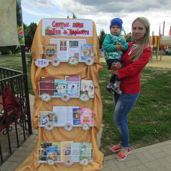 В конце мастер-класса семьи получили закладки с рекламой книг для семейного чтения. Кроме того сотрудниками детской библиотеки для семей была оформлена книжная выставка «Святые лики любви и верности», на которой можно было познакомиться с литературой о святых Петре и Февронии, с семейными ценностями и обрядами.