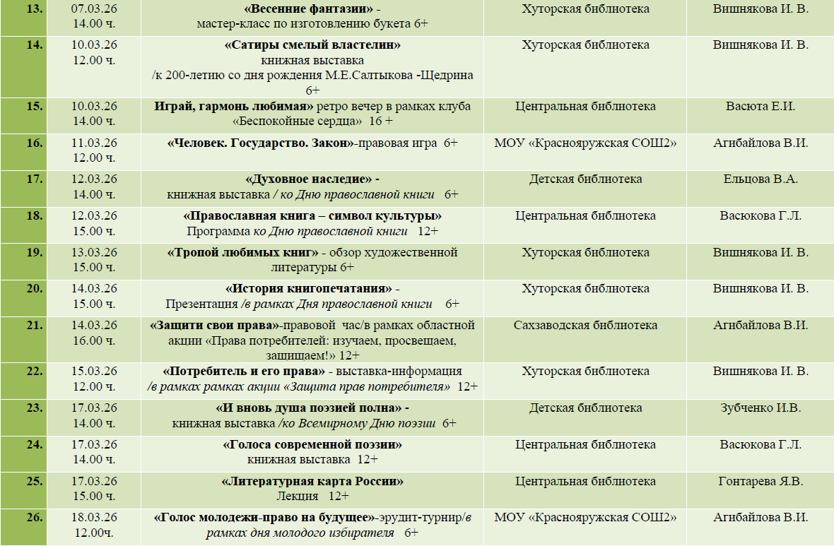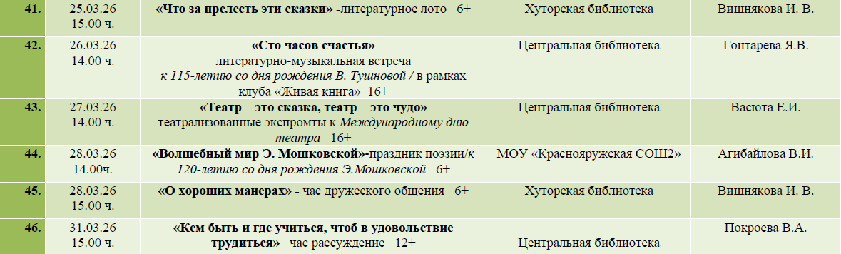 ПЛАН МЕРОПРИЯТИЙ МБУК "КРАСНОЯРУЖСКАЯ ЦБС"