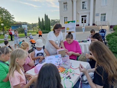 30 июля сотрудники библиотеки в рамках губернаторского проекта «Белгородское лето» в Ветеранском дворике п. Красная Яруга провели мастер-класс «Диво дивное руки творят» по плетению фенечек, браслетов дружбы.