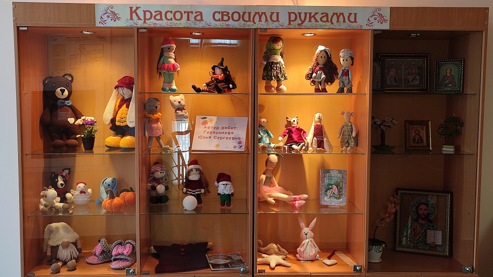 В фойе библиотеки экспонируется выставка творческих работ молодой мастерицы из с. Репяховка Юлии Герасимовой.