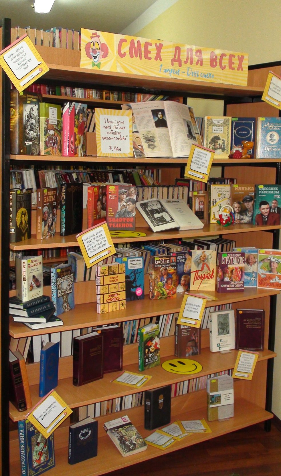 К Дню юмора на абонементе Центральной библиотеке оформлена выставка-юморина «Смех для всех».На выставке можно также познакомиться с юмористическими произведениями современных российских авторов Ю. Полякова, Б. Стругацкого, С. Довлатова и других.