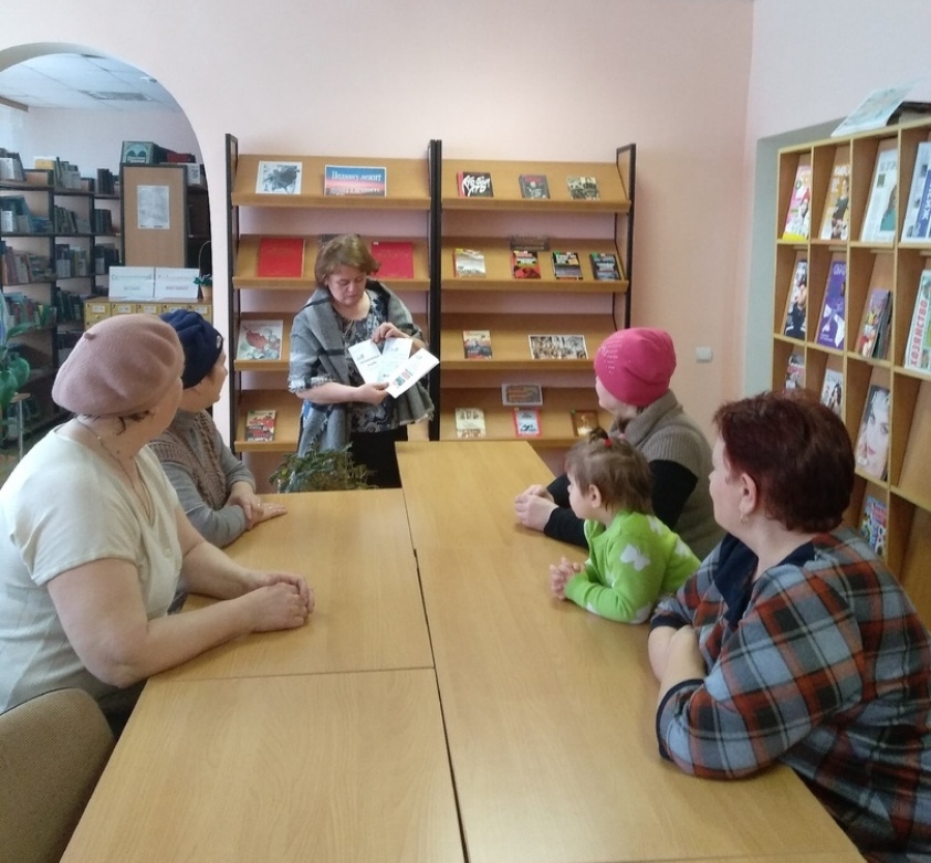 Заведующая библиотекой Похилько Л.П. раздала буклеты, подготовленные МУК «Центральной библиотекой Краснояружского района», где прописаны советы для укрепления здоровья: как придерживаться правильного питания, какими физическими упражнениями надо заниматься, какие витамины обязательно включать в свой рацион.