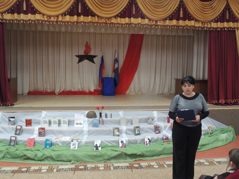 Библиотекарь познакомила участников акции с краткой биографией этих поэтов и провела обзор книжной выставки «Строки, опаленные войной». Давно ушли в вечность герои войны, но об их подвиге не дают забывать поэты, их замечательные стихи, опаленные войной.