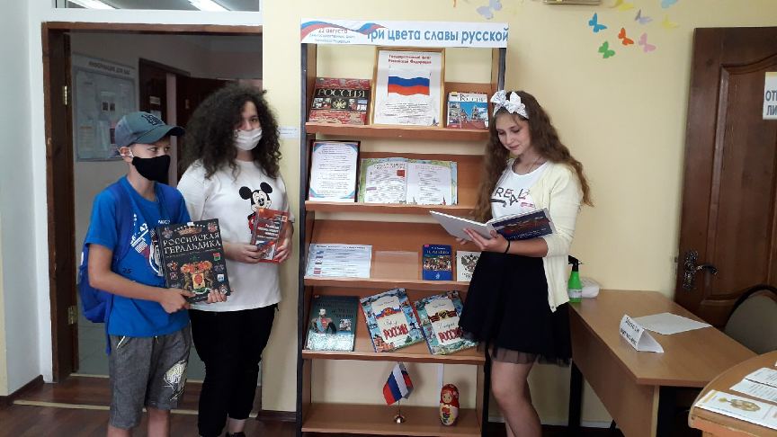 22 августа в День государственного флага Российской Федерации на абонементе Центральной библиотеки прошла патриотическая акция «Символ Отечества». В эти дни читатели смогли проверить и закрепить свои знания по истории флага России, а также государственной символике, посетить книжную выставку «Три цвета славы русской». На память об этом событии все читатели получили ленточки-триколор, а также информационные буклеты, знакомящие с историей возникновения этого государственного символа.