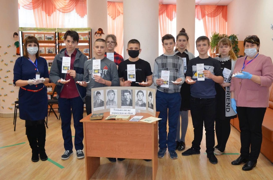 В ходе проведения акции подростки узнали краткую историческую справку о боевых действиях, проводимых в Афганистане, Чечне и других горячих точках. Присутствующим были розданы буклеты и листовки с информацией о том, какой вклад внесли наши земляки в защиту мирной жизни в других странах. Продолжением мероприятия стал обзор книжной выставки «Только он не вернулся из боя».
