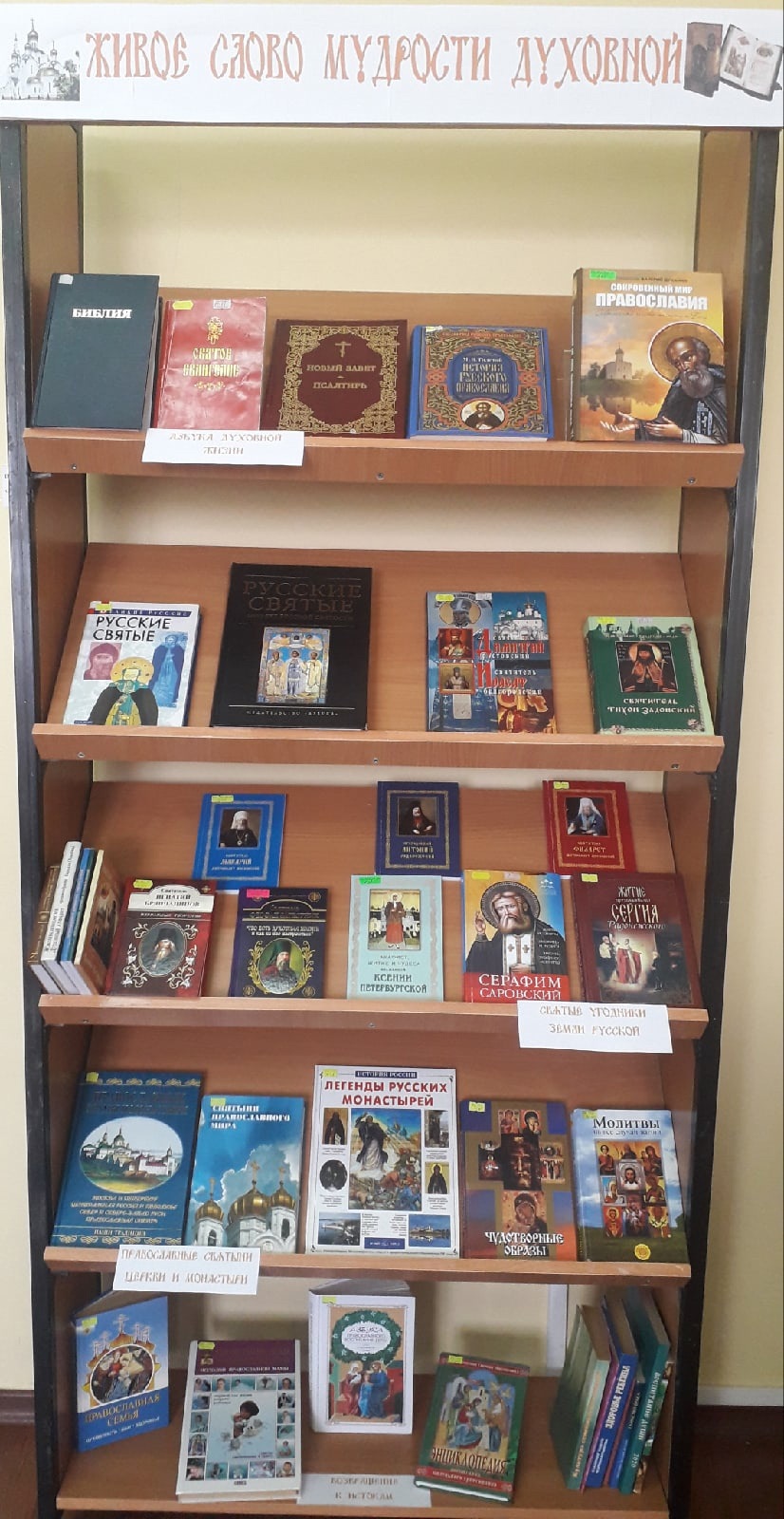 К этому событию, 3 марта на абонементе Центральной библиотеки Краснояружского района организована книжная выставка «Живое слово мудрости духовной». Выставка состоит из четырех разделов.