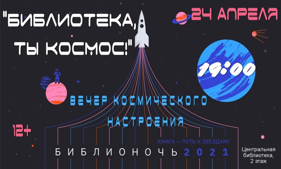 24 апреля в рамках Всероссийской акции «Библионочь – 2021» в Центральной библиотеке состоится вечер космического настроения «Библиотека, ты космос!»