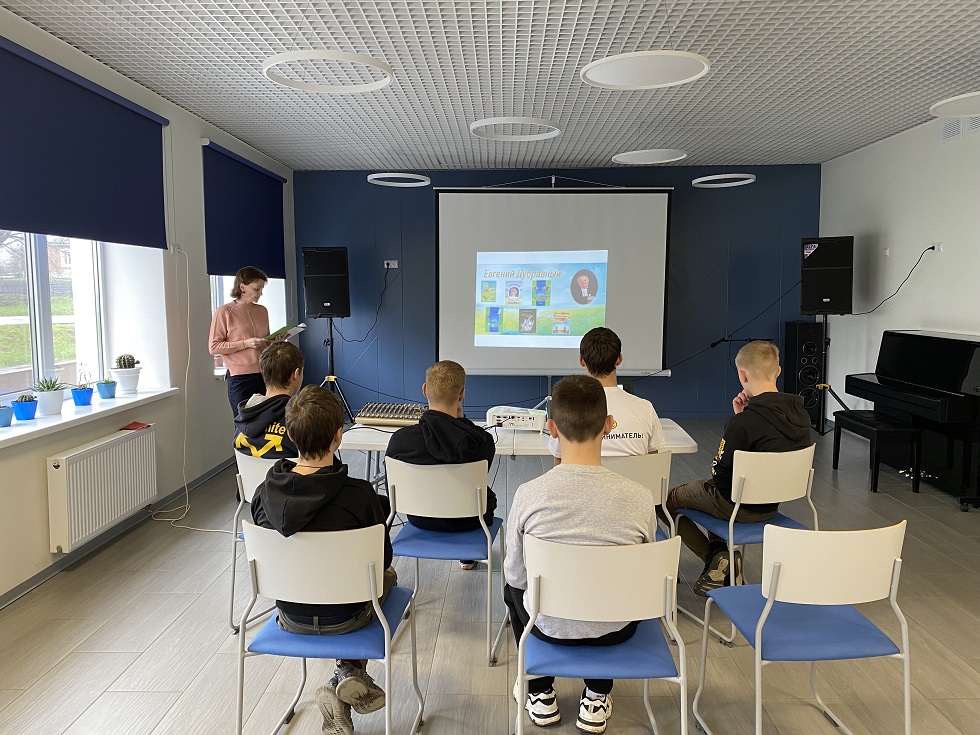 В начале мероприятия библиотекарь познакомила детей с биографией и творчеством белгородского писателя Евгения Федоровича Дубравного. Ребята узнали, что Евгений Федорович был увлекающимся человеком: поэтом, автором документальных и художественных книг, коллекционером, фотографом, а также стоял у истоков белгородского телевидения.