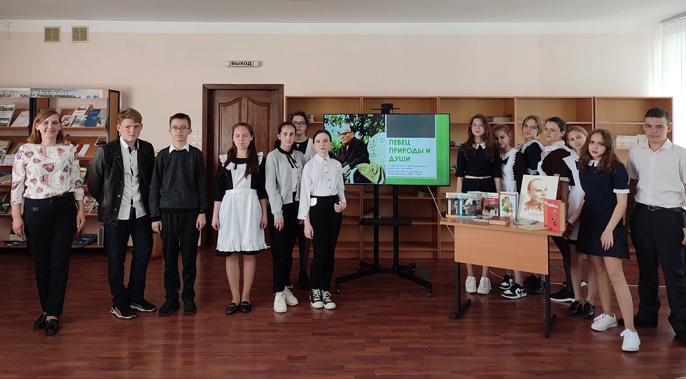 К 130-летию со дня рождения писателя в отделе обслуживания для учащихся 7-х классов ОГБОУ «Краснояружская СОШ» состоялась литературная гостиная «Певец природы и души». В ходе мероприятия ребята узнали об интересных моментах жизни и творчестве писателя, вспомнили некоторые произведения автора, с некоторыми познакомились впервые.