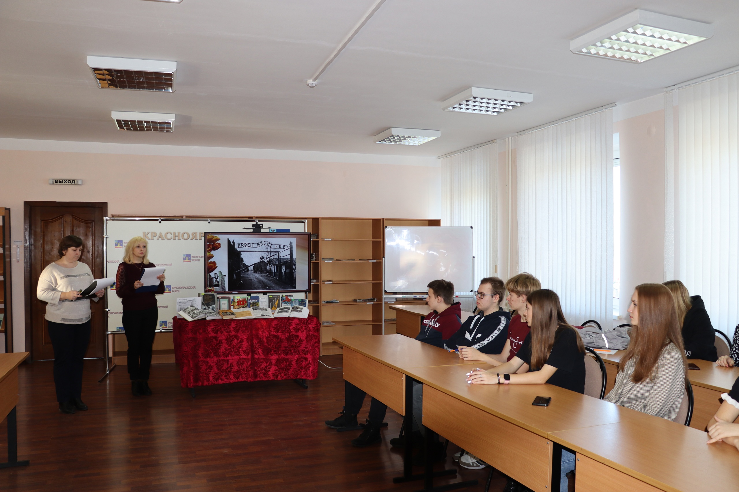 Сотрудники центральной библиотеки и краеведческого музея познакомили ребят с основными понятиями, связанными с трагедией Холокоста. Рассказали о многочисленных жертвах фашизма, о жестоком истреблении еврейского народа, которых массово уничтожали в лагерях смерти. Шесть миллионов евреев – расстрелянных, удушенных в газовых камерах¸ сожженных в печах крематориев. Этого нельзя забывать, поэтому главной целью мероприятия было донести учащимся, что сегодня мы обязаны не только помнить о прошлом, но и четко осознавать, какие угрозы современному миру несут межнациональная рознь, расовая нетерпимость и пренебрежение к человеческому достоинству. Также в ходе мероприятия прозвучали выдержки из писем, дневников, воспоминаний очевидцев.