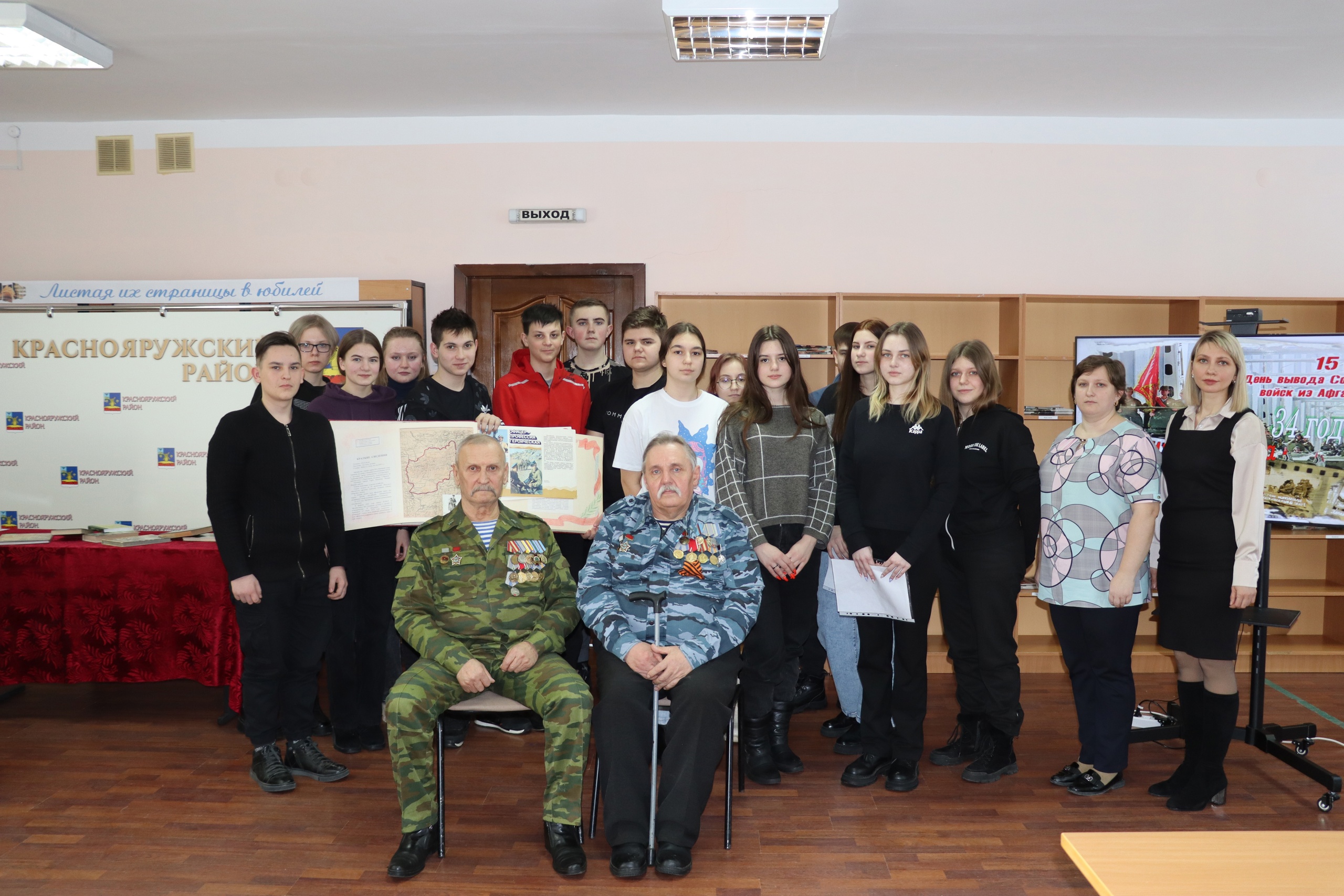 В завершении мероприятия учащиеся познакомились с выставкой, на которой были представлены документы, отражающие боевое прошлое тех, кто до конца выполнил свой долг. Ребята смогли познакомиться с произведениями авторов, свидетелями той войны, а также с альбомом памяти Краснояружского района, в который вошли имена краснояружцев, воевавших на Афганской земле.