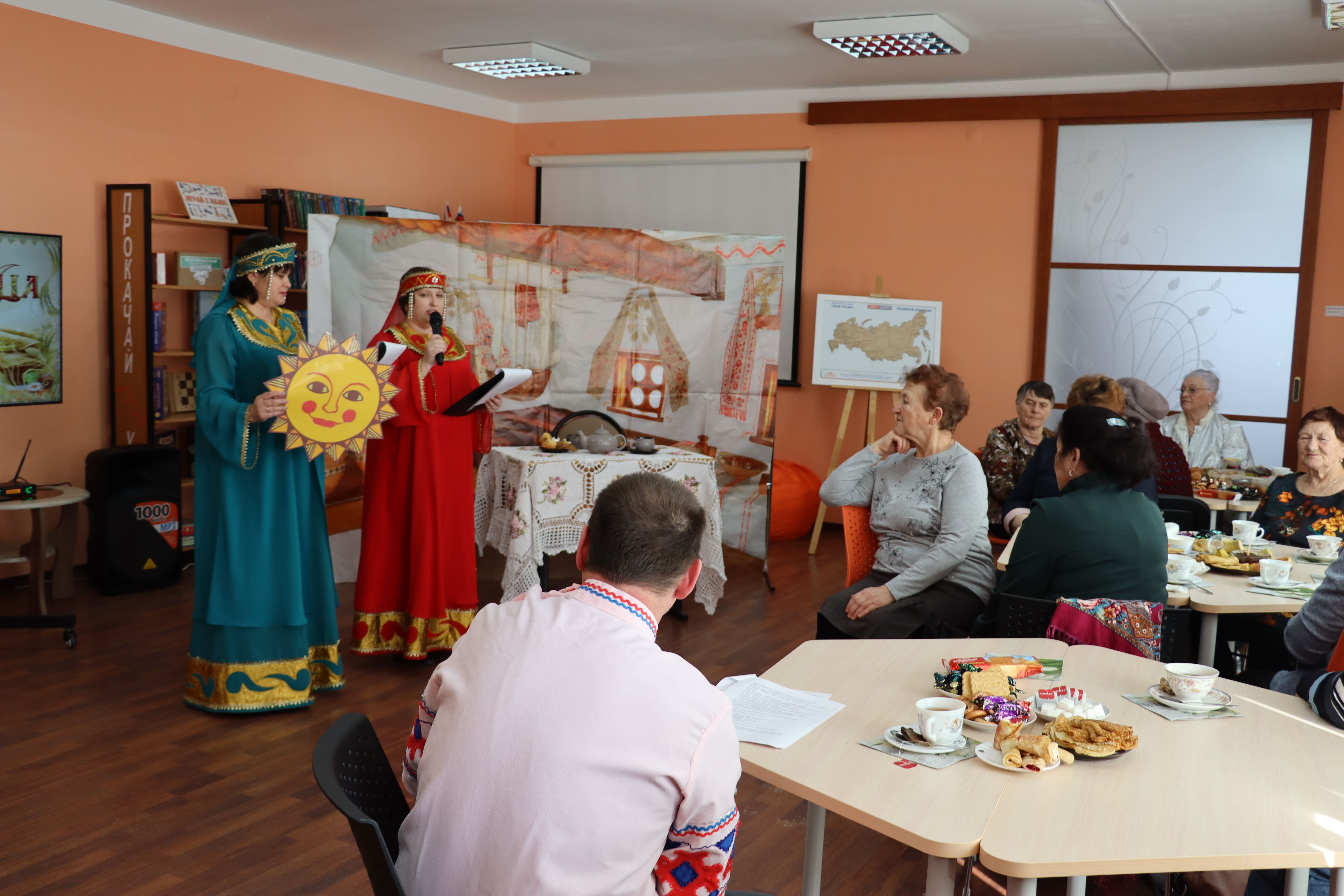 Главными героями праздника стали Зима, Весна и Масленица, в роли которых выступили читательницы серебряного возраста. Они совместно с библиотекарями для гостей провели веселую театрализованную программу с песнями, плясками, шутками и играми.