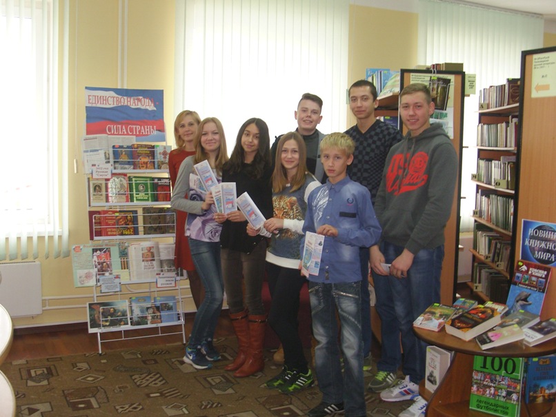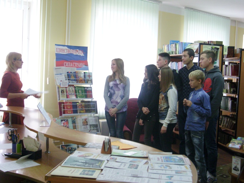 На память о пройденном мероприятии гости получили информационные буклеты «День народного единства», рассказывающий об истории праздника и аннотированные списки литературы, содержащий обзор самых интересных и популярных книг истории Смутного времени.