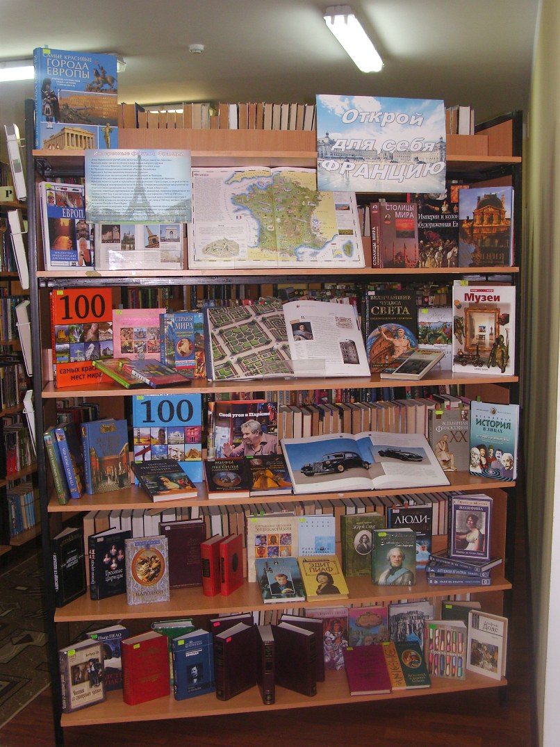 В отделе обслуживания организована книжная выставка «Открой для себя Францию». На выставке представлены книги, раскрывающие историю и культуру этой страны. Страны, которая дала миру Ж. Б. Мольера, Клода Моне, Пьера Кюри, А. Дюма и многих других известных личностей.