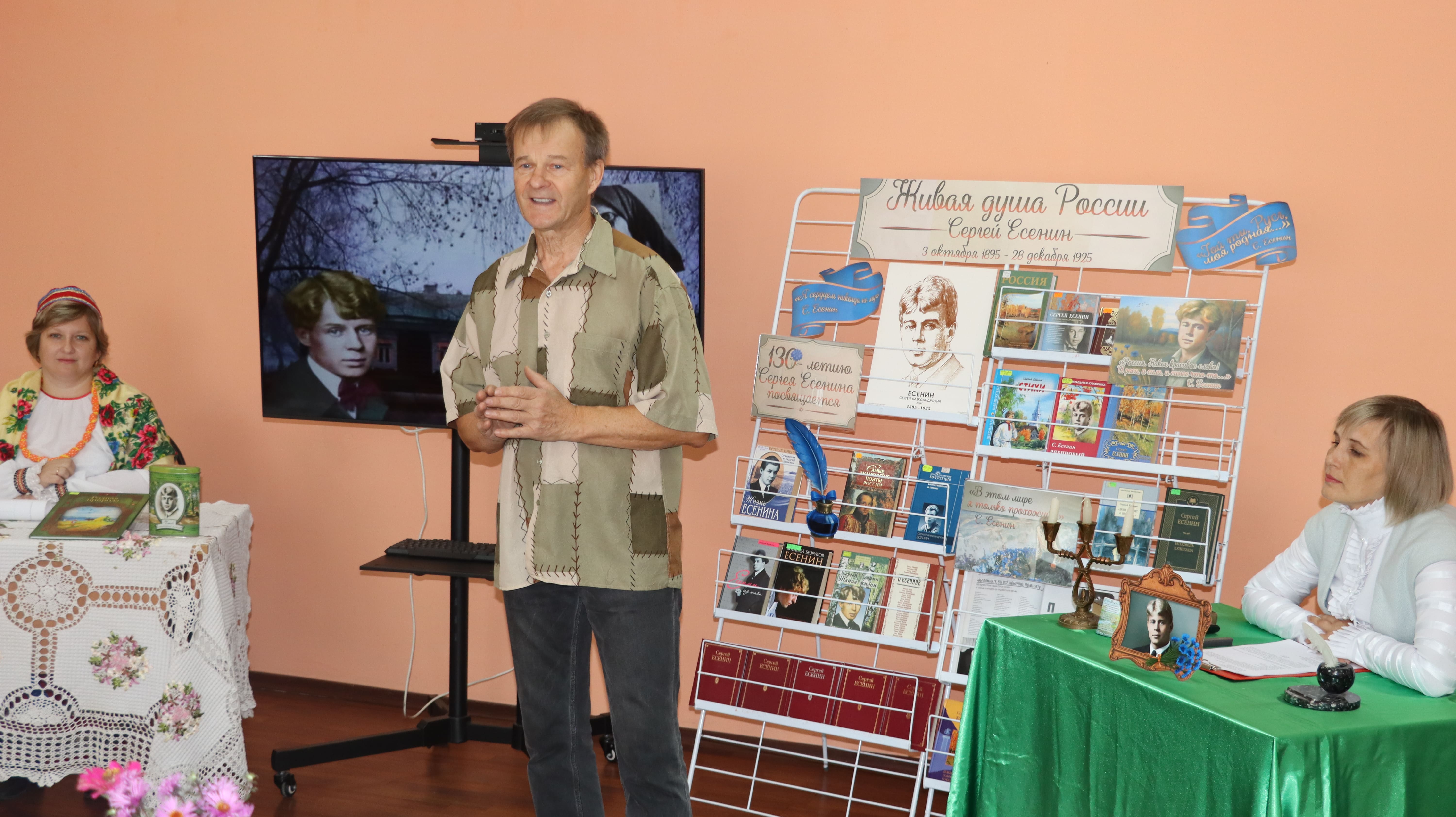 3 октября на базе Центральная библиотеке в клубе «Живая книга» прошел незабываемый вечер, посвященный 130-летнему юбилею всеми любимого русского поэта Сергея Есенина. Атмосфера мероприятия позволила гостям окунуться в мир творчества гения Серебряного века.
