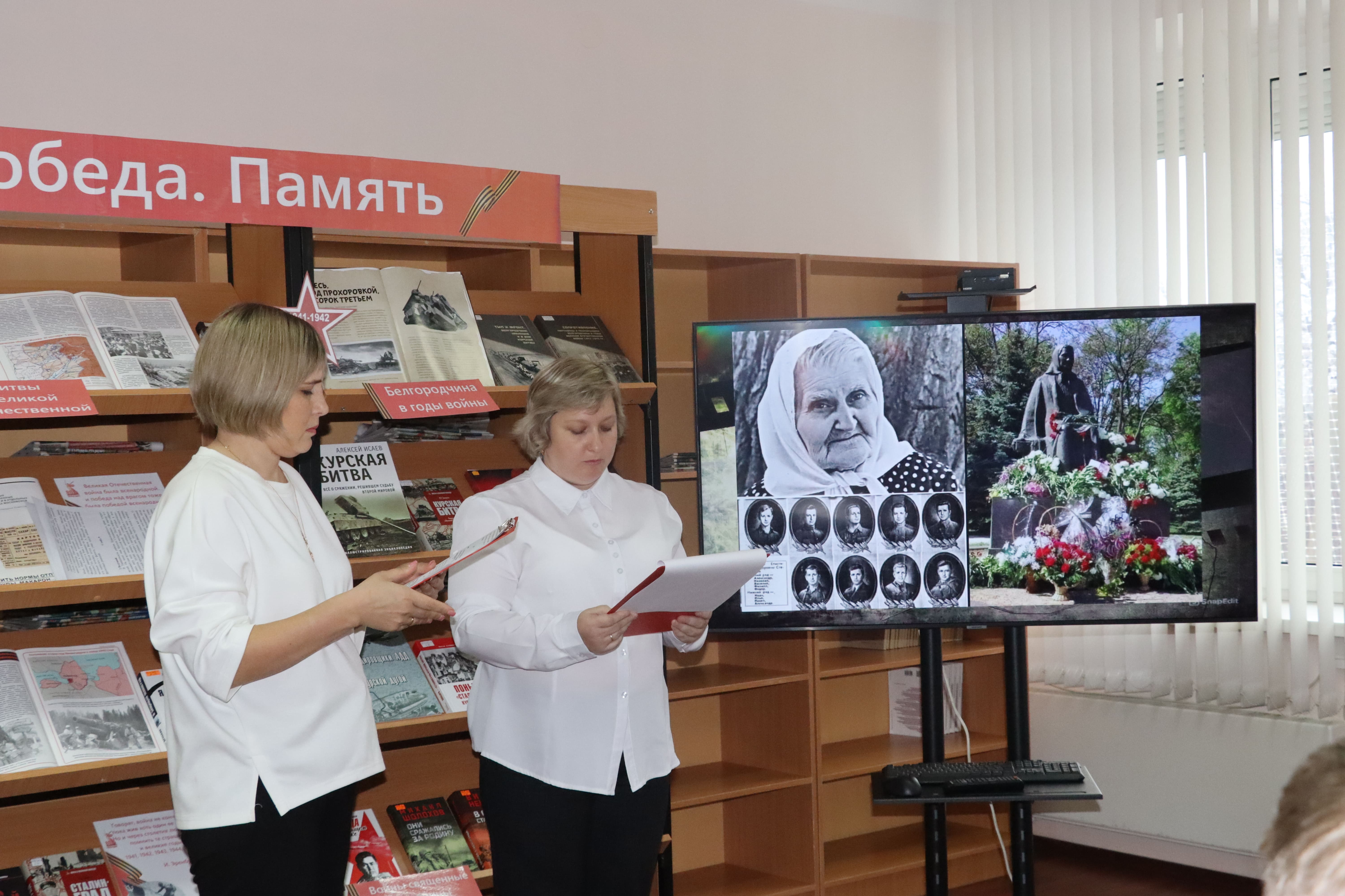 В преддверии Дня матери в библиотеке состоялась литературно-музыкальная композиция «Подвиг солдатских матерей» для учащихся Краснояружской СОШ №2. Мероприятие стало проникновенным рассказом о великом подвиге русских женщин в годы Великой Отечественной войны.
