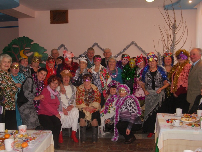 В празднично украшенном зале ведущие А.Бугаева и Л.Зинченко поздравили всех с наступающим Новым годом. За сладким столом в маскарадных костюмах, присутствующие наслаждались праздничной атмосферой.