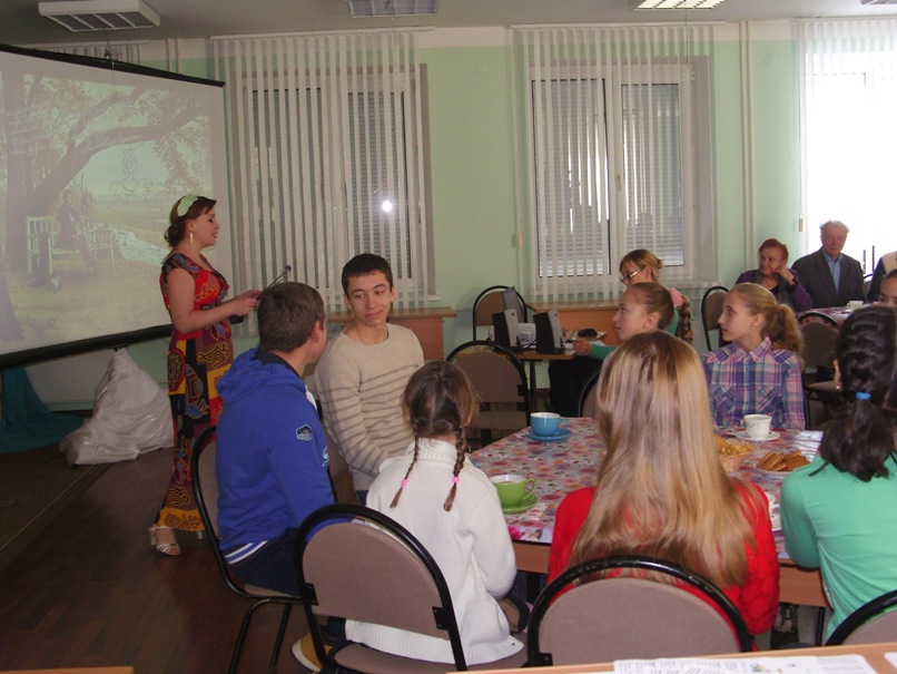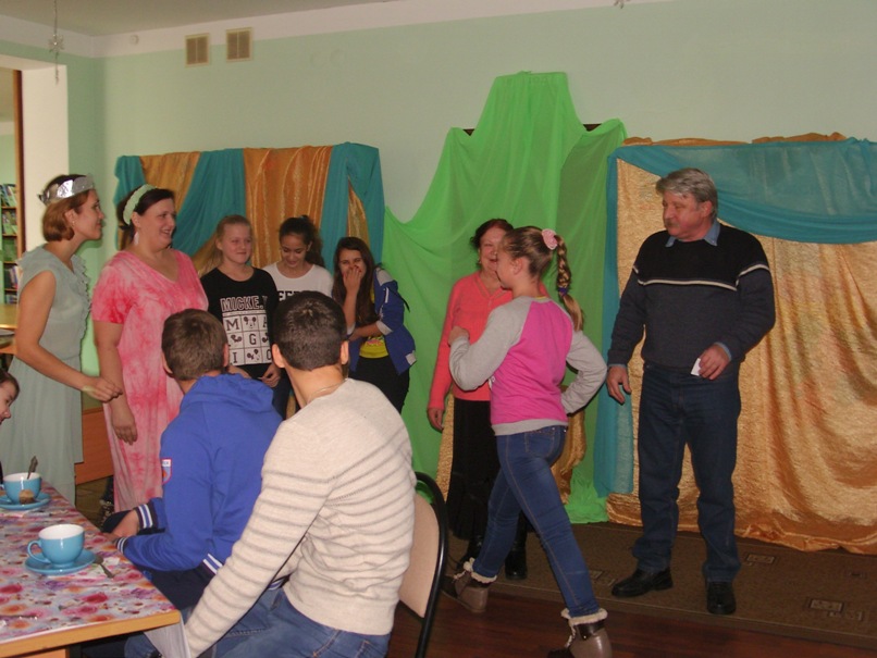 Муза театра и кино познакомила с трудной работой звукооператора. Насколько это сложный и творческий процесс гости убедились, выполняя задание «Шумовые оформители». Ведь его условия не так просты, как всем казалось, имея ряд предметов, необходимо было озвучить часть кинофильма. Самым запоминающимся моментом был театр – экспромт «Зимняя сказка» и «Три медведя». Все актеры буквально вжились в роль и с азартом, энтузиазмом воплотили сценарий в жизнь. Закончилась гостиная чаепитием и веселым общением.