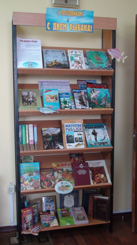 В преддверии Дня рыбака на абонементе была организована книжная выставка «С праздником! С Днем рыбака!». На которой представлены книги, журналы, раскрывающие секреты хорошей рыбалки. Здесь каждый найдет свое: начинающий рыбак освоит азы рыбной ловли и научится правильно выбирать удочки, прикорм для рыб, а бывалый – познакомится с известными техниками ловли донных рыб. Для любителей рыбалки раскроют тайны журналы: «Рыболов», «Охота и рыбалка», «Мужские секреты».