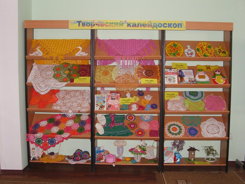 Выставка «Творческий калейдоскоп» вызвала большой интерес у читателей библиотеки. Они не только любовались работами, но задавали много вопросов, интересуясь техникой выполнения, материалами и сроками их изготовления.