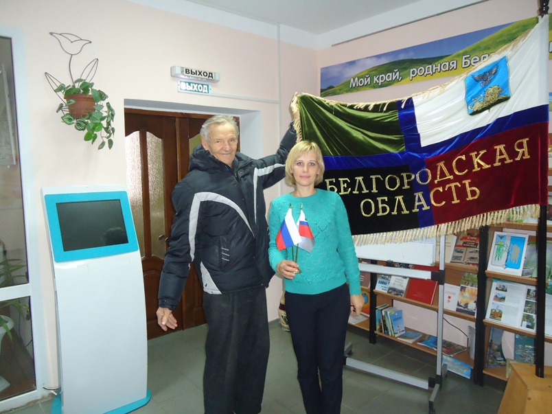 Так, в День Белгородского флага, 14 октября, в отделе обслуживания Центральной библиотеки по-настоящему празднично и патриотично прошла краеведческая панорама «Флаг – символ славы!» Вниманию всех пользователей библиотеки в этот праздничный день был представлен информационный обзор, раскрывающий историю возникновения флага и герба Белгородской области, а также значении каждого цвета флага и каждого символа герба. Интересным фактом для участников мероприятия явилось то, что большую роль для развития государственного флага России сыграл Пётр I.