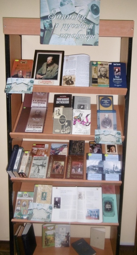 Каждое время рождает своих поэтов и писателей. Во второй половине прошлого века не было поэта и писателя популярнее, чем Н. А. Некрасов и Ф. М. Достоевский. Так, на абонементе отдела обслуживания Центральной библиотеки функционирует книжная выставка «Записки о русском характере», посвященная 195-летию со дня рождения великих классиков русской литературы.