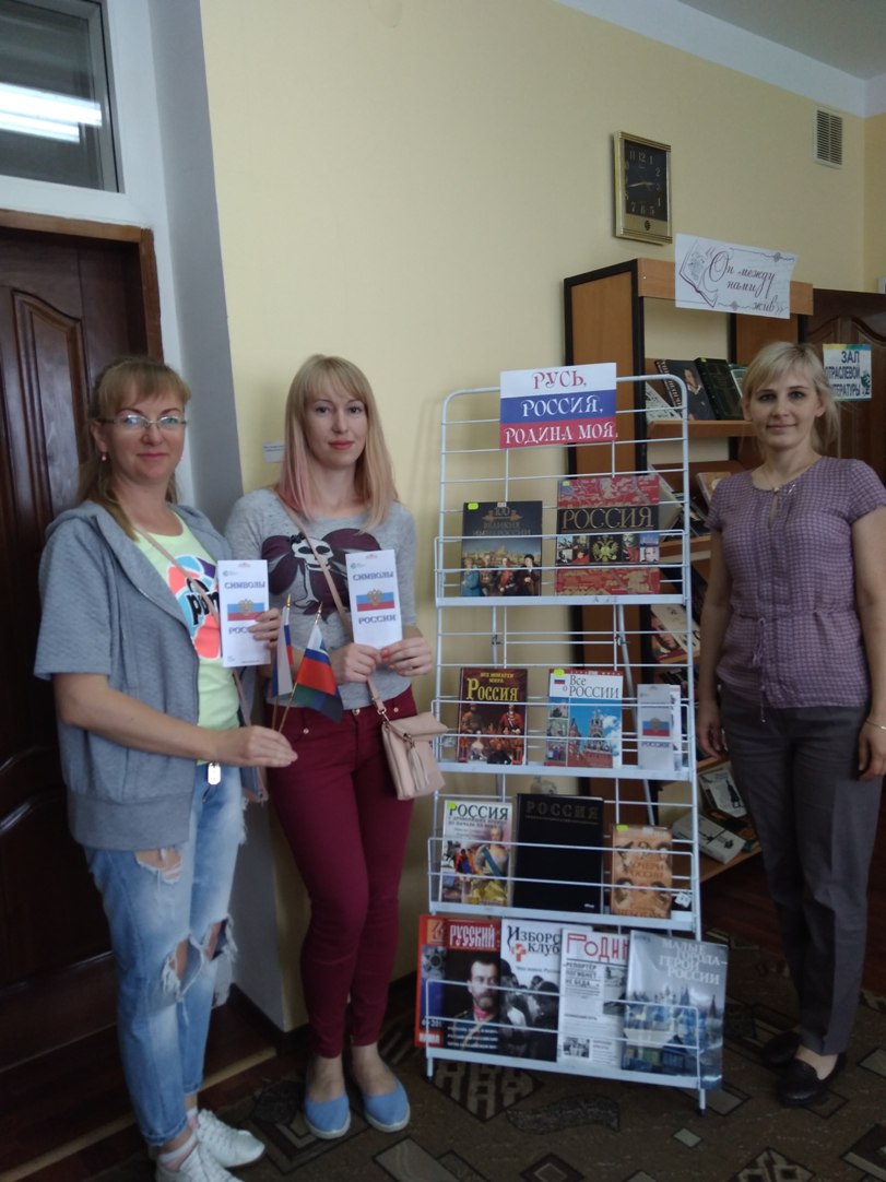 12 июня граждане нашей большой страны отмечают День России. Официально праздником этот день стал лишь в 1994 году, когда Борис Ельцин подписал соответствующий указ. В рамках данного события в отделе обслуживания была проведена акция «Три символа родной державы». В преддверии праздника была организована книжная выставка «Русь, Россия, Родина моя», где представлены энциклопедии, справочники и журналы по истории нашей страны. Всем посетителям вручены информационные буклеты «Символы России». В которых представлены исторические данные трех главных государственных символов России: герб, флаг и гимн. А также основные понятия, с которыми ассоциируется Россия - самовар, матрешка, балалайка, тройка, медведь, береза.