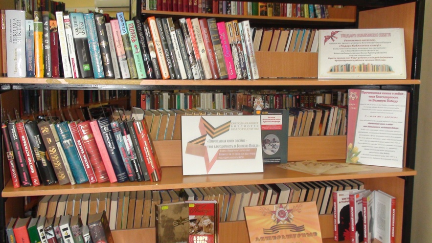 С мая по август на абонементе отдела обслуживания Центральной библиотеки проходит читательская акция «Прочитанная книга о войне - твоя благодарность за Великую Победу». Книги, участвующие в акции, имеют особенные закладки в виде георгиевской ленты или с другой символикой времен Великой Отечественной войны 1941-1945 гг. На полочках вас ждут более 100 произведений о войне, написанные участниками и свидетелями этого тяжелого и трудного события в истории нашей страны. Данные произведения - это душевная боль и муки, потеря близких и родных, нелегкие воспоминания и терзания людей. Но вместе с тем - это самоотверженность, героизм, мужество, стойкость, отвага русского народа. Давайте еще раз вспомним и поблагодарим участников Великой Отечественной войны 1941-1945 гг. Участвуйте в акции! Читайте книги!