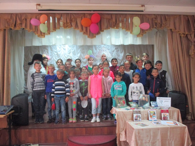 Продолжилось мероприятие на сцене. В образе Царевны Лебедь (Рябченко Л) и царя Гвидон (Беналиев М) юные актеры разыграли сценку из «Сказки о царе Салтане». Затем предложили ребятам ответить на вопросы из этой сказки. И Старик (Рябченко Н.), и Старуха (Камила У.) из «Сказки о золотой рыбке» пришли с заданиями для ребят. С большим удовольствием все дружно вспоминали любимых героев, названия произведений А. Пушкина.