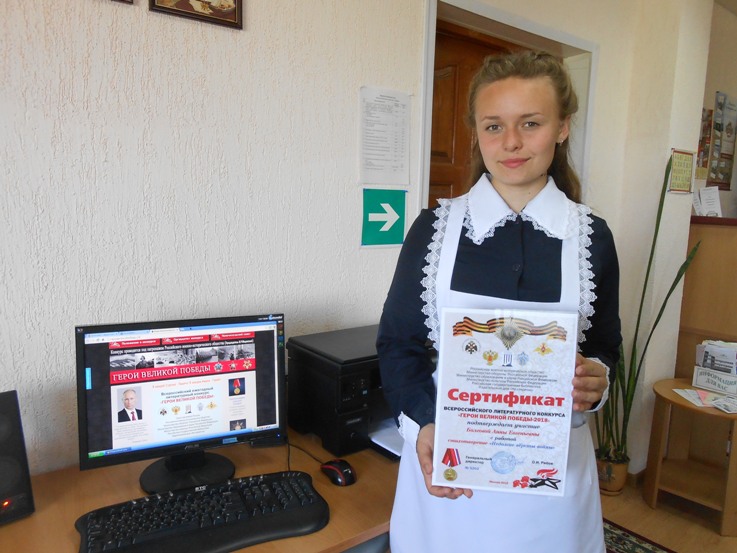 С 25 ноября 2017 года по 25 декабря 2018 года проходит Всероссийский ежегодный литературный конкурс на лучший литературный рассказ, очерк, стихотворение, песню, фотографию и рисунок эпического, исторического и военно-патриотического содержания. Конкурс проходит в целях сохранения и увековечения памяти о проявленном в годы Великой Отечественной войны героизме советских солдат и мужестве российских воинов, защищавших рубежи Родины. На конкурс, который проходит в пять этапов, поступило 11050 работ со всех уголков России. С 25 ноября 2017 года по 8 мая 2018 года - 1-й этап конкурса – отборочный, который отсеял почти половину представленных творческих работ. Ученица 9 класса Графовской СОШ, Анна Болгова, прошла отборочный этап конкурса, представив стихотворение «Недолгие вёрсты войны», посвящённое воинам – землякам, погибшим в боях у села Мирополье Сумской области 28 февраля 1943 года. Работа Анны вошла в список участников для дальнейшего участия в конкурсе.