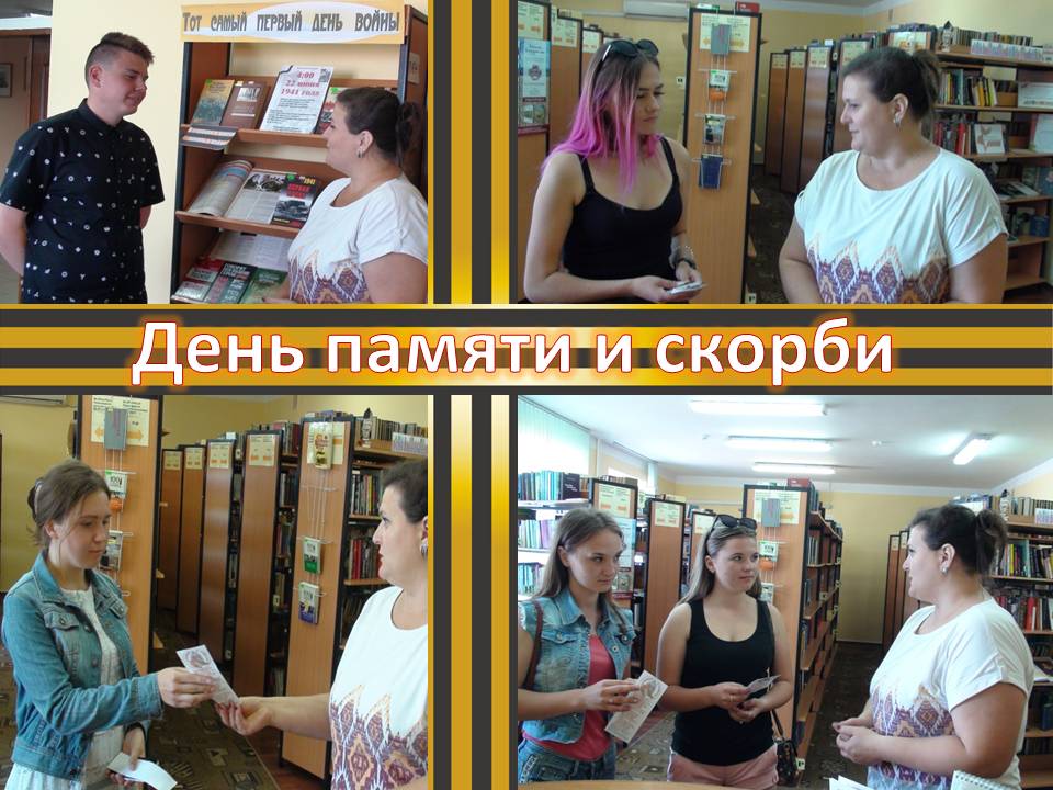 Очень важно, чтобы эту память сохранили и передали наши дети своим потомках. 22 июня на абонементе для молодежи была проведена информационная акция «День памяти и скорби». Юным читателям, посетителям библиотеки были вручены тематические закладки и проведен обзор книжной выставки.
