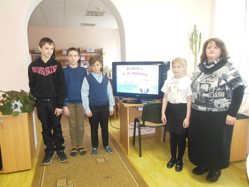 20 марта учитель 4 – го класса Теребренской ООШ Любовь Филипповна Кулеш в очередной раз провела урок литературного чтения в библиотеке – филиала №9 с. Теребрено. В ходе мероприятия учащиеся познакомились с многогранной поэзией Маршака С. Я.