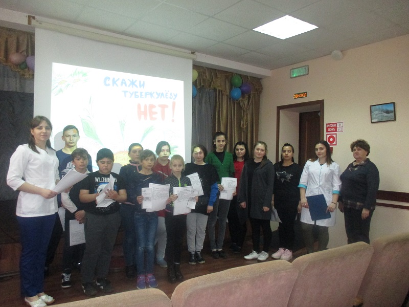 В рамках месячника борьбы против туберкулеза в Хуторском сельском Доме культуры состоялась встреча со студентами медицинского колледжа БелГУ - Погорельцевой Юлией, Гуловой Евгенией, Беналиевой Айгуль и Беналиевой Садаф. Гулова Е. и Погорельцева Ю. рассказали собравшимся о причинах возникновения туберкулеза. Всем участникам встречи были вручены памятки и информационный буклет о профилактике туберкулеза и символ борьбы против заболевания – белую ромашку, которую изготовили в творческой мастерской. В модельной библиотеке – филиале №10 х.Вязовской для ребят проведен обзор книжной выставки «Туберкулез - болезнь, не знающая границ». Мероприятие было подготовлено совместно с Хуторским СДК.