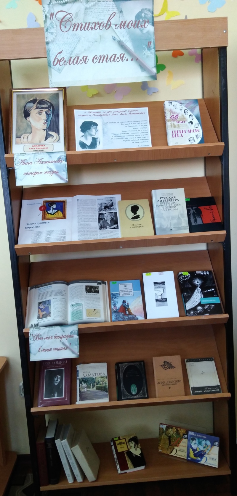 Выставка-портрет «Стихов моих белая стая» не оставит равнодушным как ценителей поэзии, так и далеких от нее людей. Посетители познакомятся с жизнью и творчеством Анны Ахматовой, смогут узнать интересные факты из ее биографии, создания ее произведений. На выставке представлены поэтические сборники стихов, воспоминания ее современников. Серия портретов и фотографий Анны Ахматовой позволит подчеркнуть утонченность, загадочность, мудрость поэтессы.