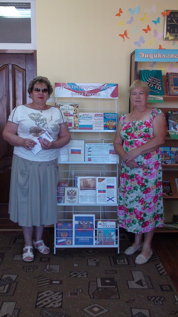 В рамках празднования Дня флага Российской Федерации на абонементе отдела обслуживания прошла акция «Флаг России – гордость нации». Всем посетителям 21 и 22 августа были вручены информационные буклеты об истории становления флага нашей огромной страны и флажки с триколором.