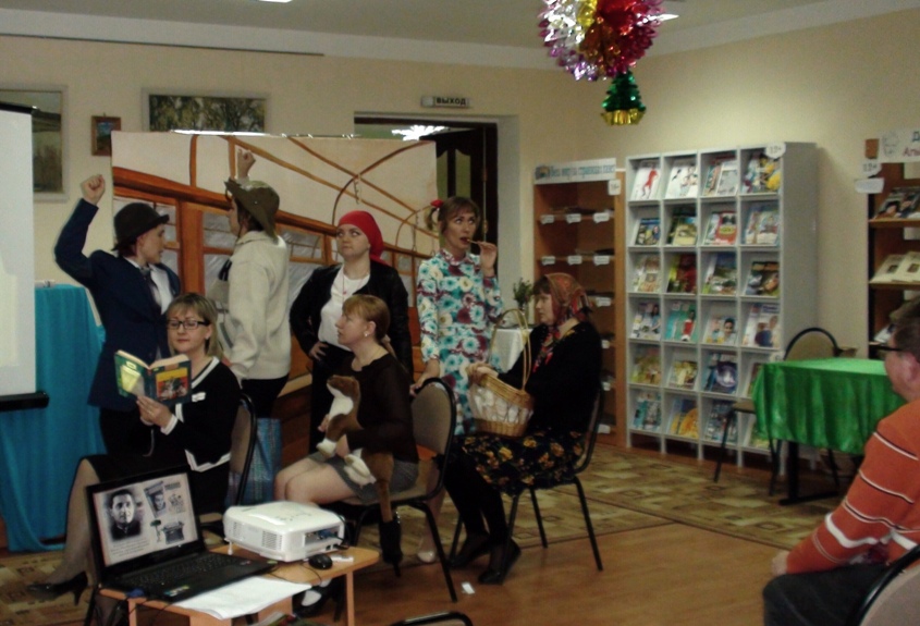 Особую праздничную атмосферу праздника придали музыкальные номера в исполнении методиста ЦКР Зинченко Л.В., а зарядить хорошим настроением сумела библиотечная корпоративная театральная студия «Театр на Театральной» с постановкой юмористических миниатюр по рассказам Михаила Зощенко.